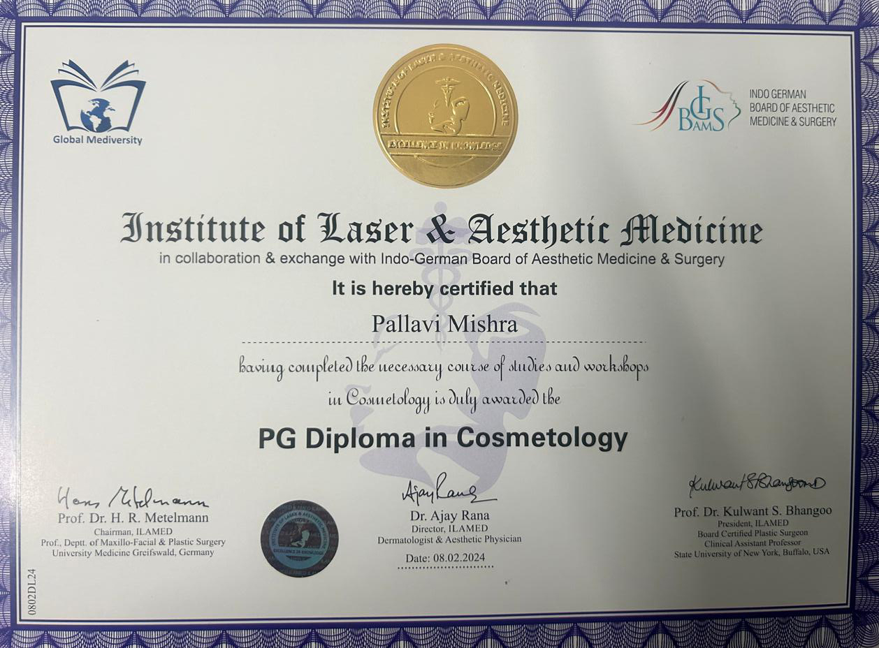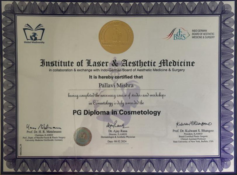 Ms. Pallavi Mishra is passionate about helping people achieve their healthiest, most radiant skin. Ms. Mishra believes that everyone deserves to feel confident and beautiful in their own skin.